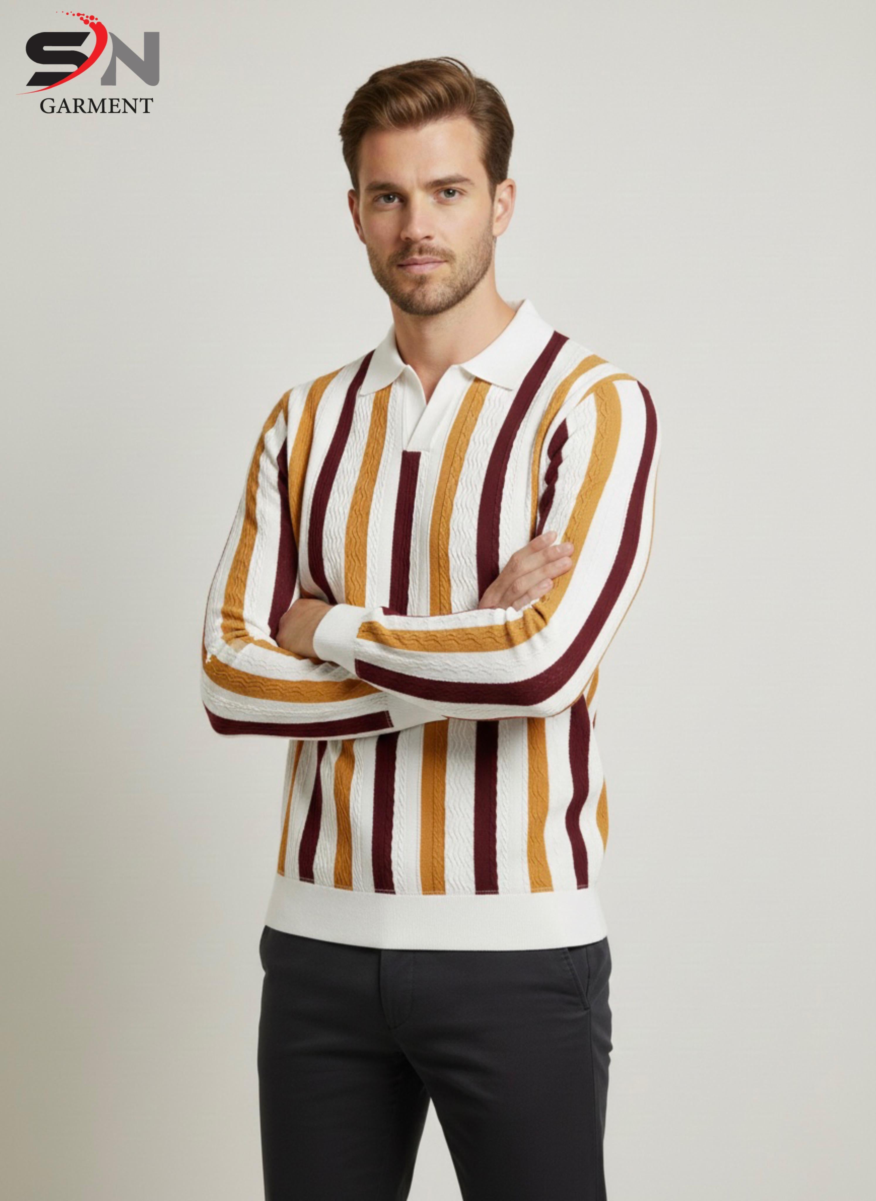 Upgrade your everyday style with this Men’s Vertical Lining Printed Full Sleeve Polo T-Shirt. Modern design aur premium fabric ke saath yeh T-shirt casual aur semi-formal dono looks ke liye perfect hai. Vertical stripes aapko slim aur smart appearance dete hain, jo overall look ko classy banata hai.